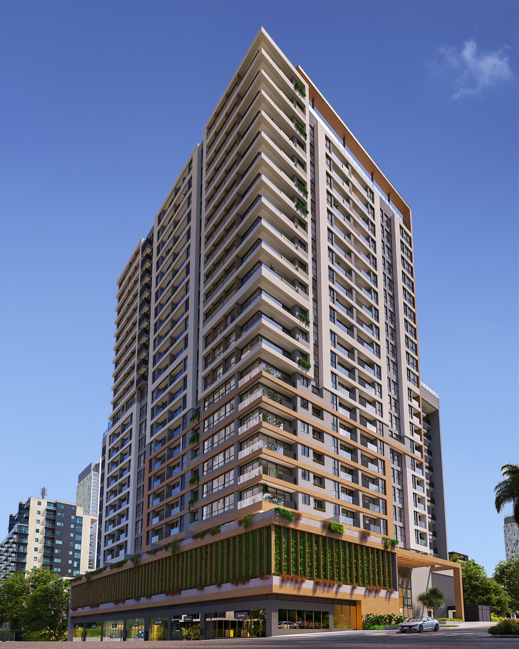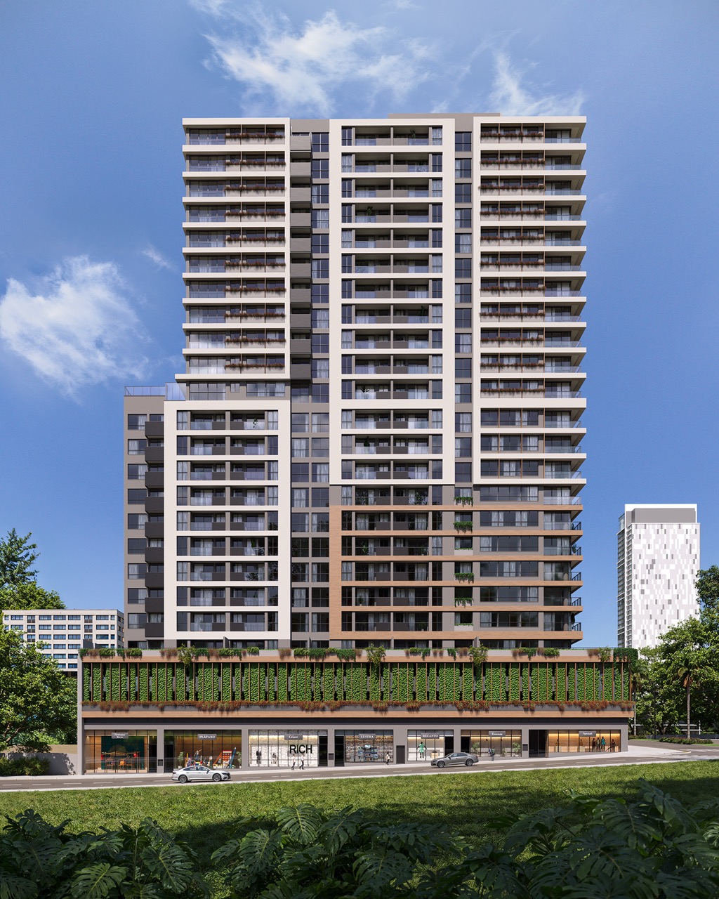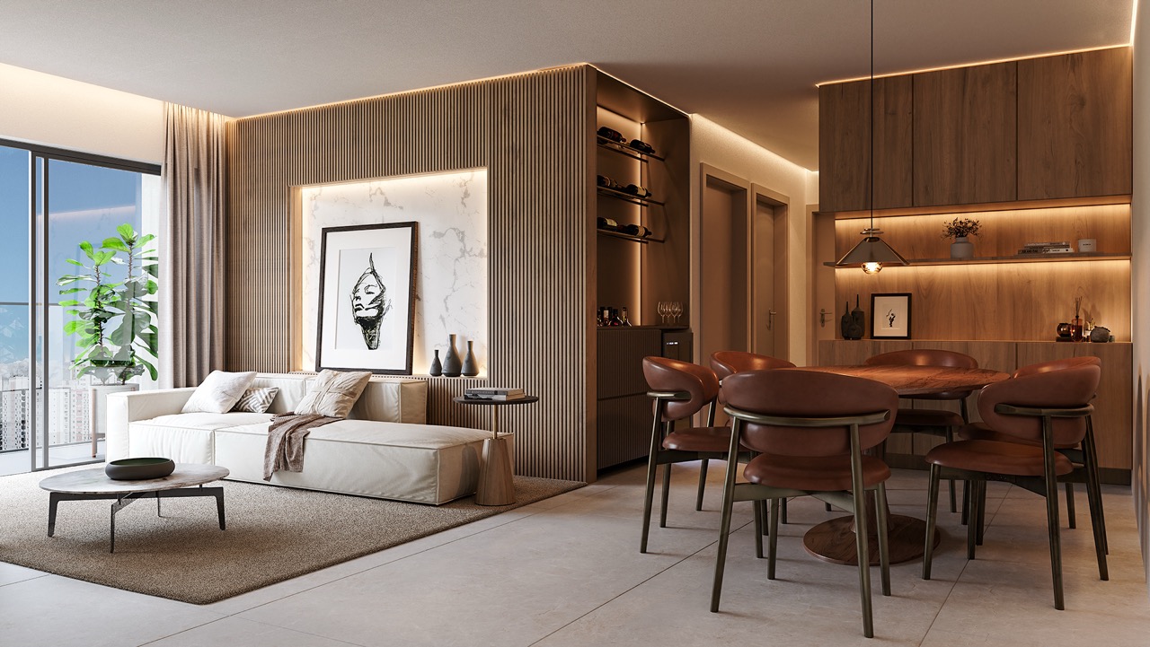 Com apartamentos que variam entre 61 m² e 101 m², o Real Living oferece opções que atendem a diferentes estilos de vida, sempre com o compromisso de entregar qualidade e funcionalidade. Inspirado no conceito de biofilia, o projeto harmoniza arquitetura moderna com elementos naturais, criando um ambiente acolhedor e sofisticado.