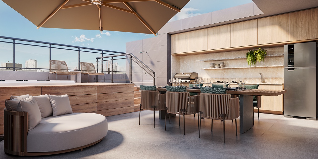 O lazer é um dos grandes destaques do empreendimento, com uma infraestrutura completa que inclui piscina com design praia, quadra de beach tennis, academia equipada, brinquedoteca, salão de festas com varanda e espaços de convivência para todas as idades. No 23º pavimento, o rooftop oferece uma experiência única, com piscina de borda infinita e raia de 25 metros, proporcionando uma vista panorâmica deslumbrante de Águas Claras.